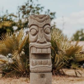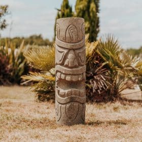 Statua Tiki, totem polinesiano in pietra vulcanica per giardino esterno - 50 cm Arue