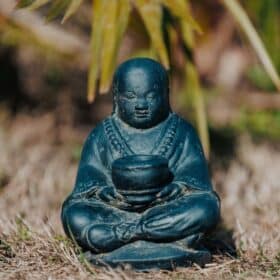 Fontaine de jardin tête de bouddha avec bassin rond noir antique 50cm